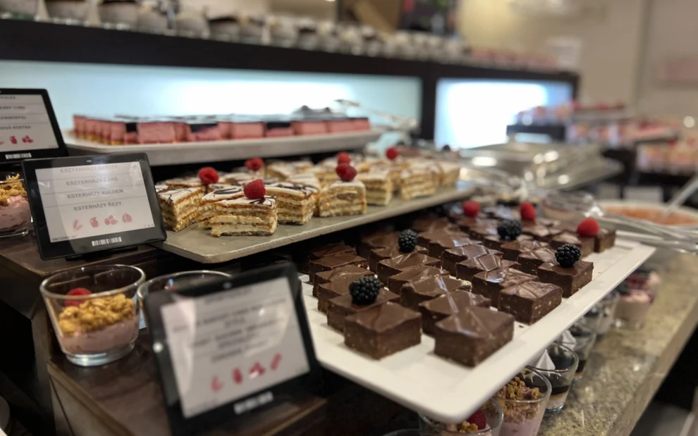 Do vedľajšieho hotela, kde sa podávali večere, stačilo prejsť chodbou, takže sme ani nemuseli chodiť von. Večerný bufet nemal chybu a bol perfektným zakončením každého dňa pobytu! Na výber bolo niekoľko druhov polievok, rôzne mäsité jedlá a prílohy. Okrem medzinárodnej kuchyne boli v ponuke aj tradičné maďarské špeciality, na ktorých sme si skutočne pochutnali. Nechýbali však ani vegetariánske pokrmy a varianty pre hostí s potravinovými alergiami. K dispozícii bol aj šalátový bar a množstvo druhov lahodných mini dezertov. Okrem vynikajúceho jedla oceňujem aj skvelý personál reštaurácie, ktorý bol veľmi rýchly a pozorný.