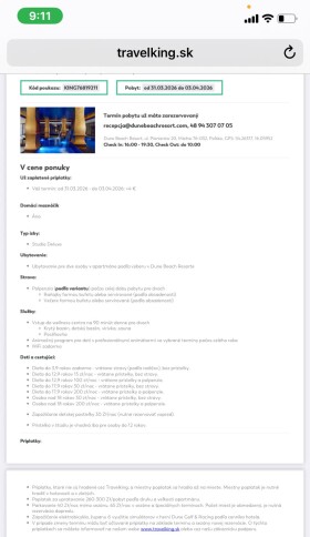 No bolo to sklamanie, neviem za posledný krát čo cez Travelking chodím je to horšie a horšie . Teraz sme mali vo faktúre uhradenú stravu , no po kontaktovaní travelkingu nič také nebolo pobyt je bez stravy v prílohe posielam foto. Čo da týka hotela okrem poplatku za upratovanie počas 4 dní Ani raz Ani výmena uterákov toto v iných hoteloch bol štandard a bez poplatku a ešte vykurovanie izby bolo klimatizáciou, ktorá nefungovala dobre takže sa zobudíte do chladu nič príjemné. Ale,more a okolie bolo krásne ,preto určite odporúčam balt.