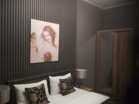 Interiér pokoje je normální není to žádný luxus, jde vidět, že je dost opotřebovaný (potrhané tapety, poškozený obraz, postele velmi úzké, nechladící lednička). V pokoji se často nedá dýchat, neboť i při otevřeném okně dokořán neproudí vzduch do pokoje, a to rozhodně ne v letní sezóně, kdy vám ještě z koupelny vychází neskutečné teplo. Velké plus pro paní pokojskou, která je velmi ochotná a nádherně vám uklidí pokoj, a dokonce i poskládá pyžamko.