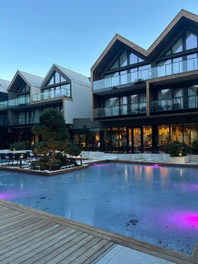 Hotel nemohu hodnotit, byli jsme ubytováni v pokoji apartmánového domu. Vše odpovídalo popisu, wellness super, ale celkem daleko na přecházení z apartmánu - v zimě nic příjemného. Pokoj je pěkný, ale má řadu menších nedostatků - téměř nejde otevřít skříň - brání tomu brano na vstupních dveřích. chybí křeslo na sezení, jsou jen 2 barové židličky. V koupelně není kam pověsit župany, chybí kapesníčky, z kosmetiky pouze mýdlo a šampon-gel. Uklízí se jen za poplatek nebo po delší době - my byli na 3 noci, bez jakéhokoli úklidu. Pokoj je celkem malý, díky zabudované kuchyňské části, která je pěkně vybavená, včetně kávovaru na kapsle. K čemu ale je, když v pokoji máte symbolické 2 kapsle a dopředu nevíte, o jaký typ jde. Koupit kapsle v místě není možné , nikde žádný obchod v okolí. Jde o maličkost, ale rezort se pyšní 5 hvězdičkami. Po celý pobyt jsme měli obrovskou kaluž přes celý balkon, a to vůbec nepršelo. Smeták v apartmánu chybí. V areálu rezortu se pořád staví, nijak to ale neruší pobyt, vyjma blátivých cest. Personál příjemný, jídlo velmi chutné, bohatý výběr. Pobyt se nám i tak velmi líbil, termální voda v bazénech opravdu teplá, skvěla parní sauna. Chybí jakékoliv upozornění pro klienty, kteří nevědí, jak probíhá saunování zejména ve finské sauně -většina lidí v mokrých plavkách, tudíž nadměrná vlhkost v sauně -personál to naprosto přehlíží. Závěr: Hotel má velký potenciál do budoucna, ale je potřeba na tom ještě zapracovat. Někdy v budoucnu se chceme vrátit.