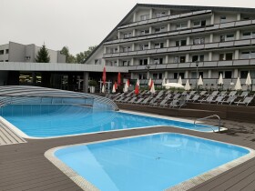 Pobyt neměl chybu,úžasné wellness,které je oddělené a bezplavkové s úžasnou obsluhou,prostě perfektní odpočinková zóna,žádný nával,pro klienty s dětmi je zvlášť bazén,vířivka atd. úplně na jiném místě než je wellness.