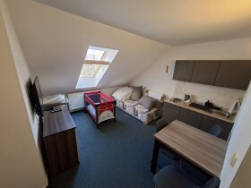 Apartman dostatocne priestranny, skrine, kuchyna aj pre dlhsi pobyt. Ranajky vyborne, siroky vyber jedal. Nic nam bechybalo.