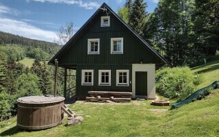 Chalupa k pronajmutí poskytuje ubytování pro 16 osob v 5 ložnicích.