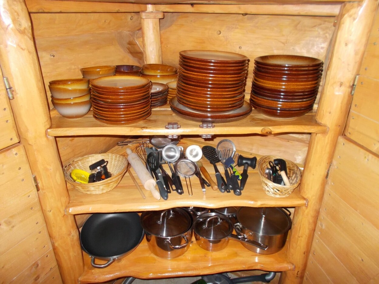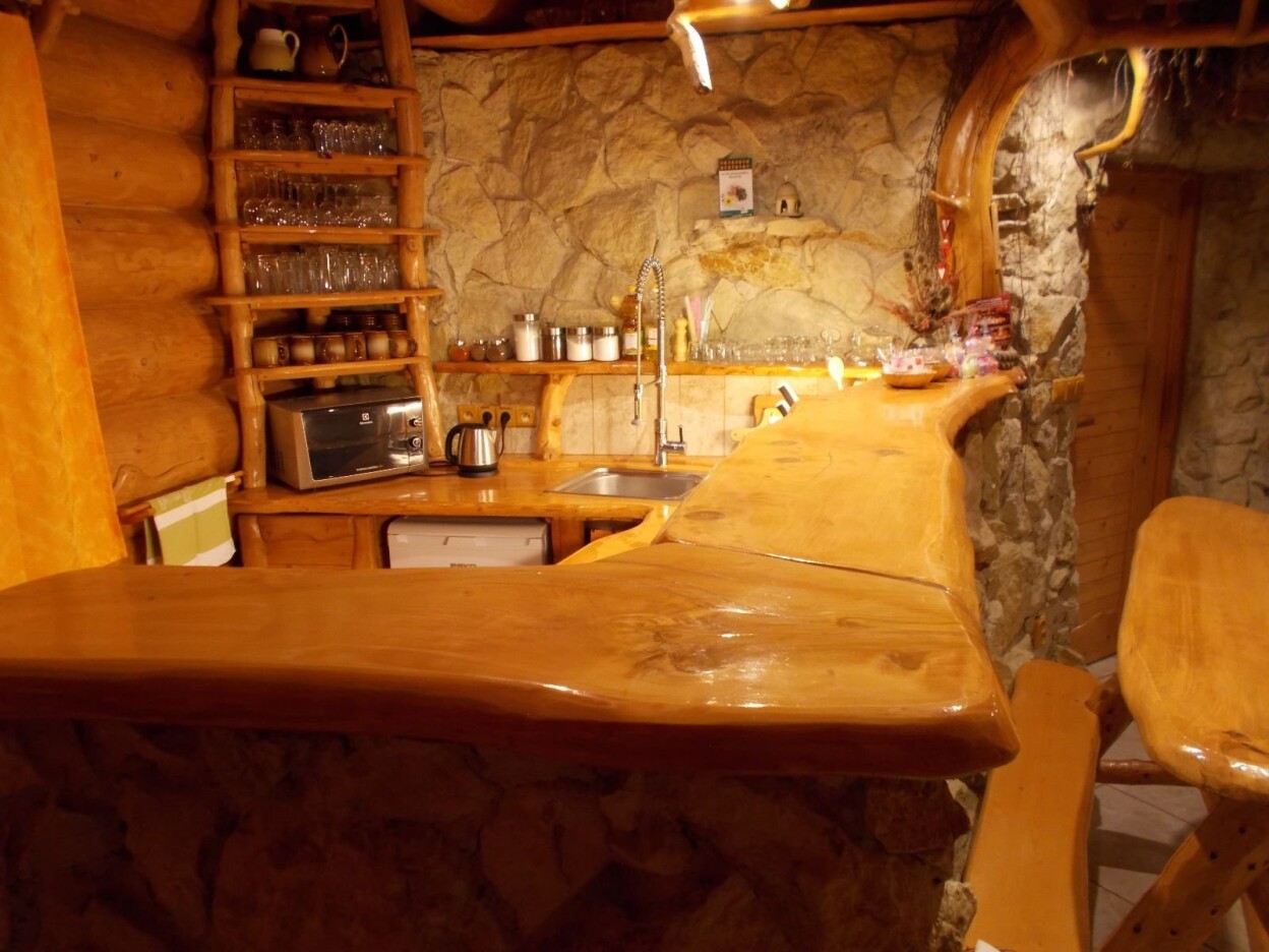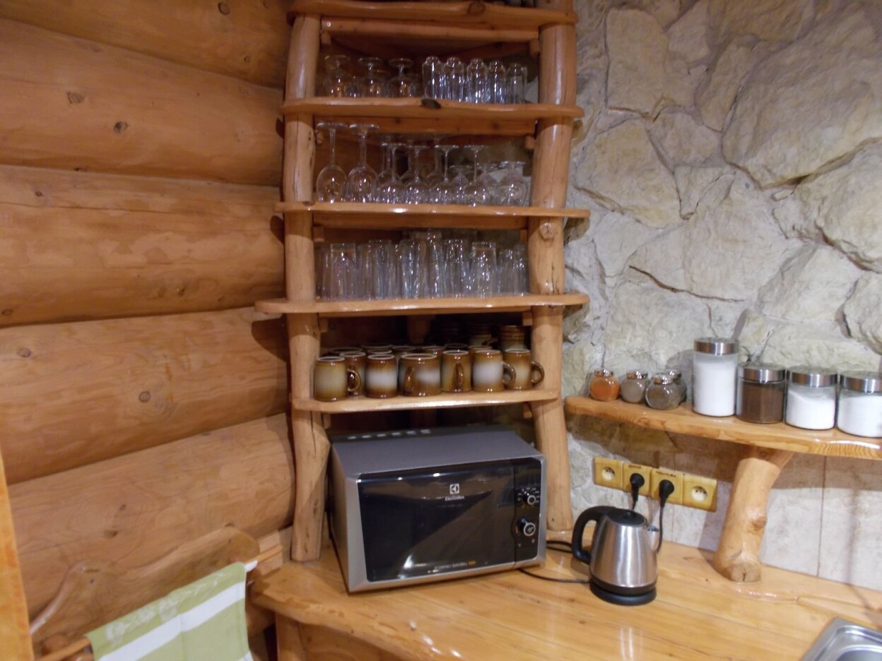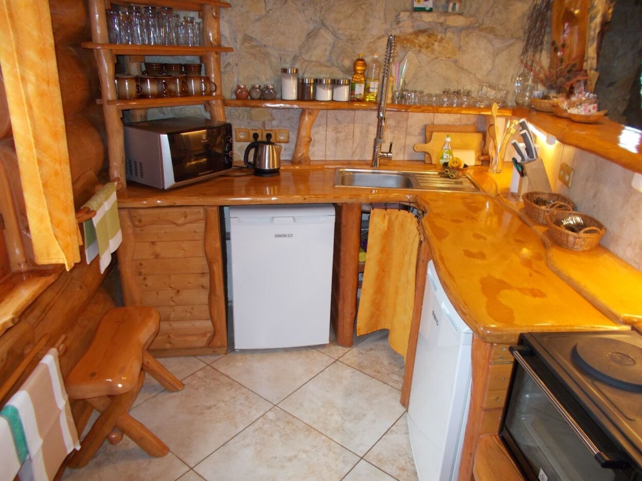 | Kuchynský kout | Nádobí, dvouplotenkový vařič, minitrouba, varná konvice, dvě ledničky, mikrovlnka, topinkovač. |