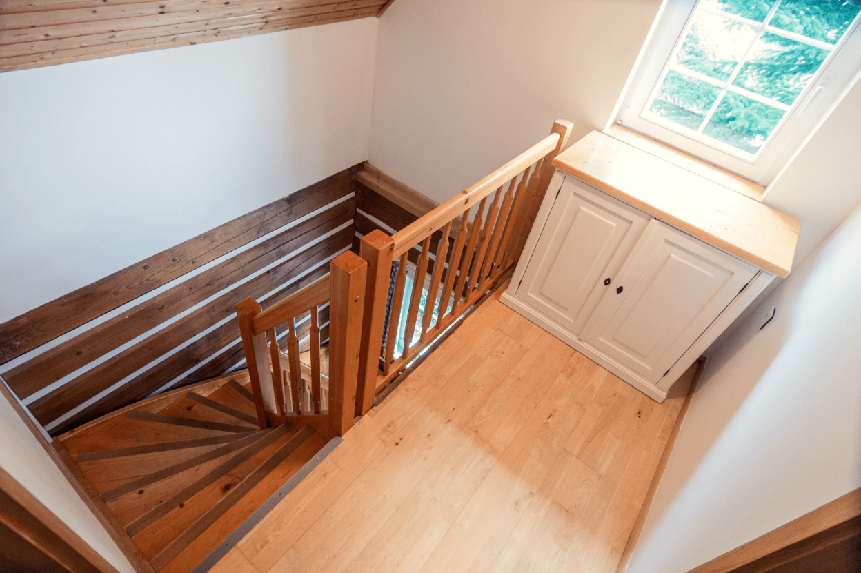 Rychlé vytápění ložnic: Horní patro je osazeno výkonnými přímotopy, které místnosti vyhřejí během pár minut. Pokud však topíte v kamnech, teplo přirozeně stoupá vzhůru a ložnice většinou není potřeba dále dotápět.