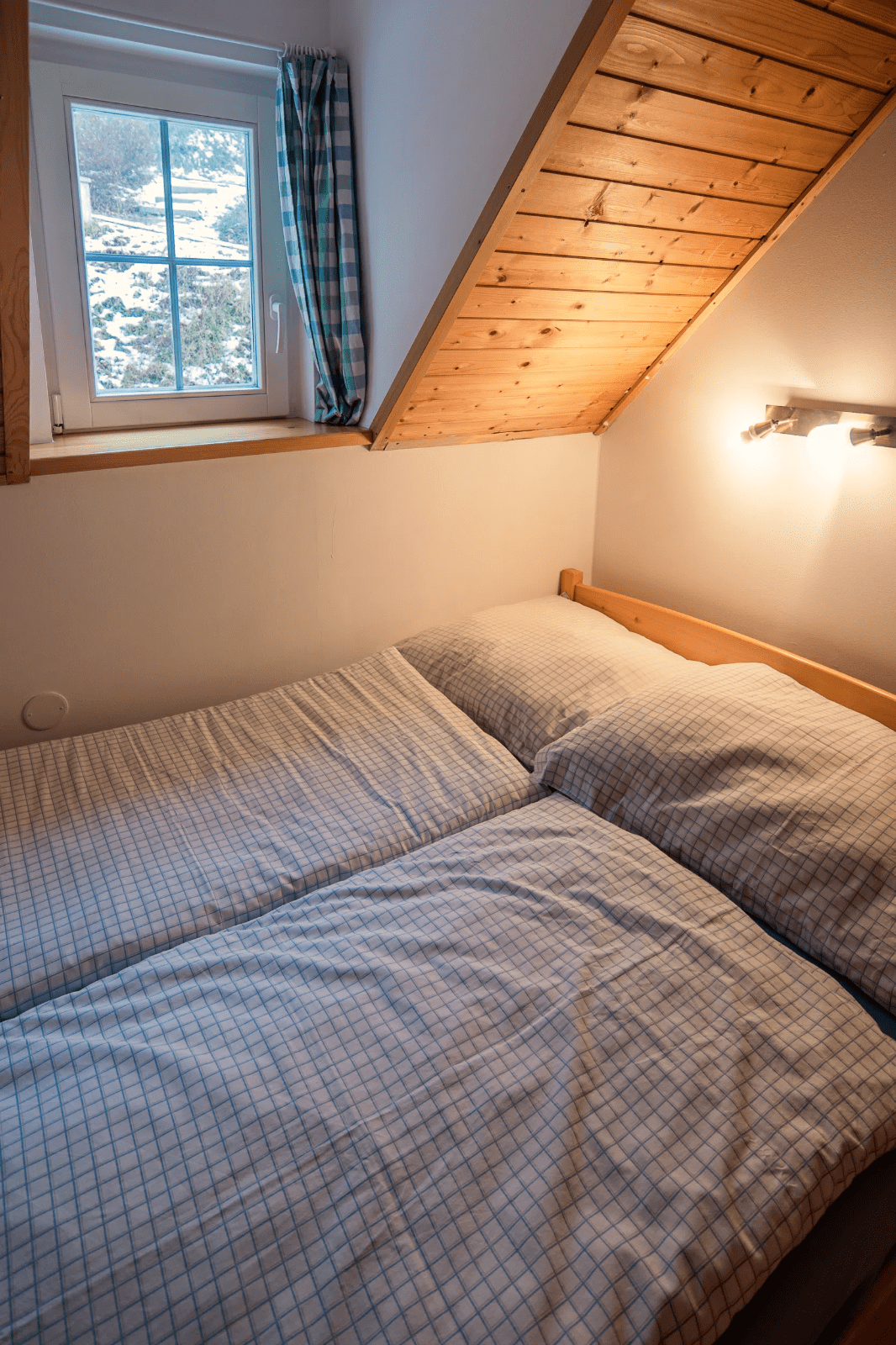 Velká ložnice (3–4 osoby): Nabízí pohodlné spaní na manželské posteli a samostatném jednolůžku, které lze díky kvalitní přistýlce využít pro dvě osoby. Dostatek úložného prostoru pro Vaše věci.