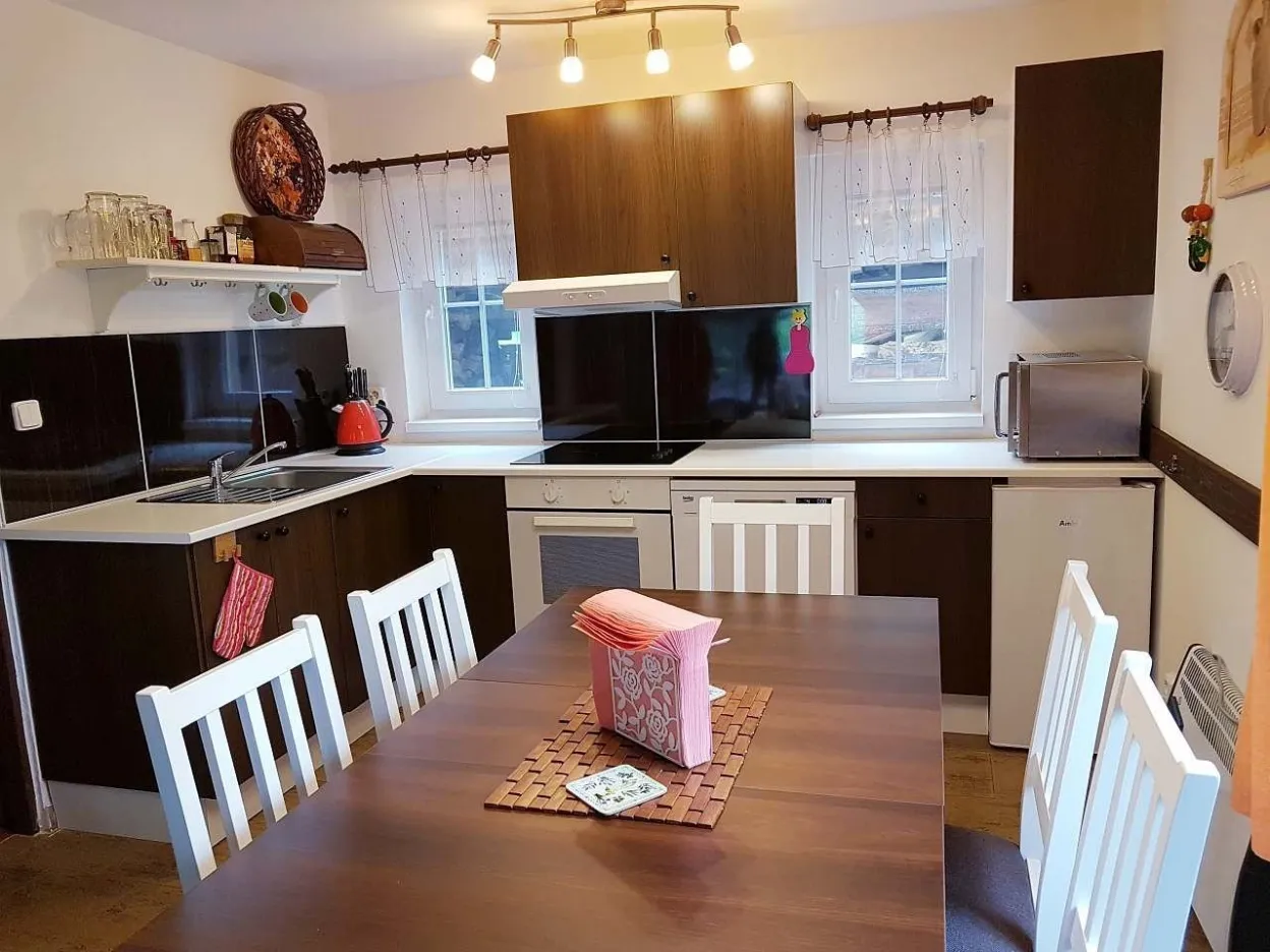 Chalupa je vytápěna krbem s rozvodem vzduchu a elektrickými přímotopy. Ohřev teplé vody bojlerem.