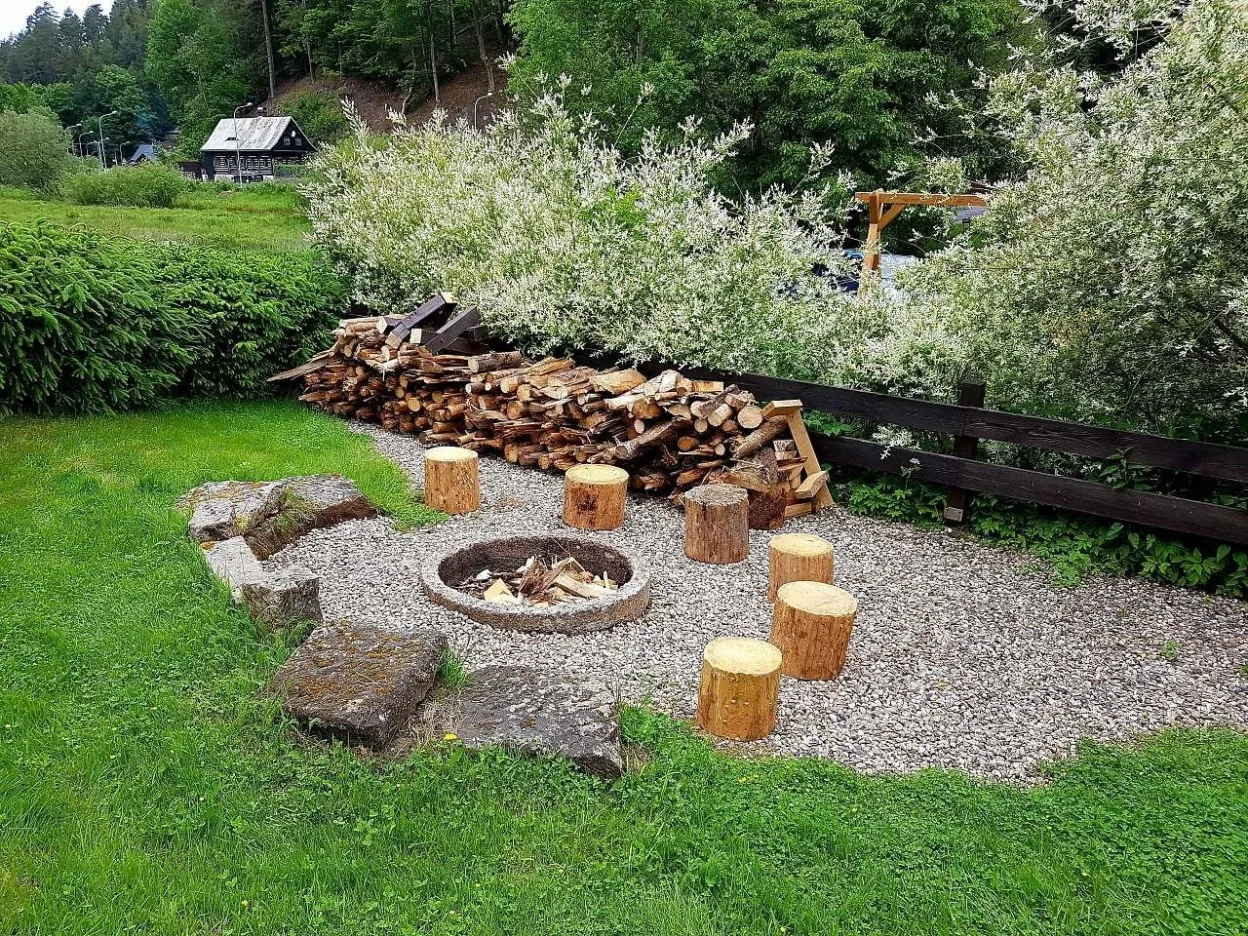 V ceně: dřevo do krbu a venkovního ohniště + povlečení + tablety do myčky.