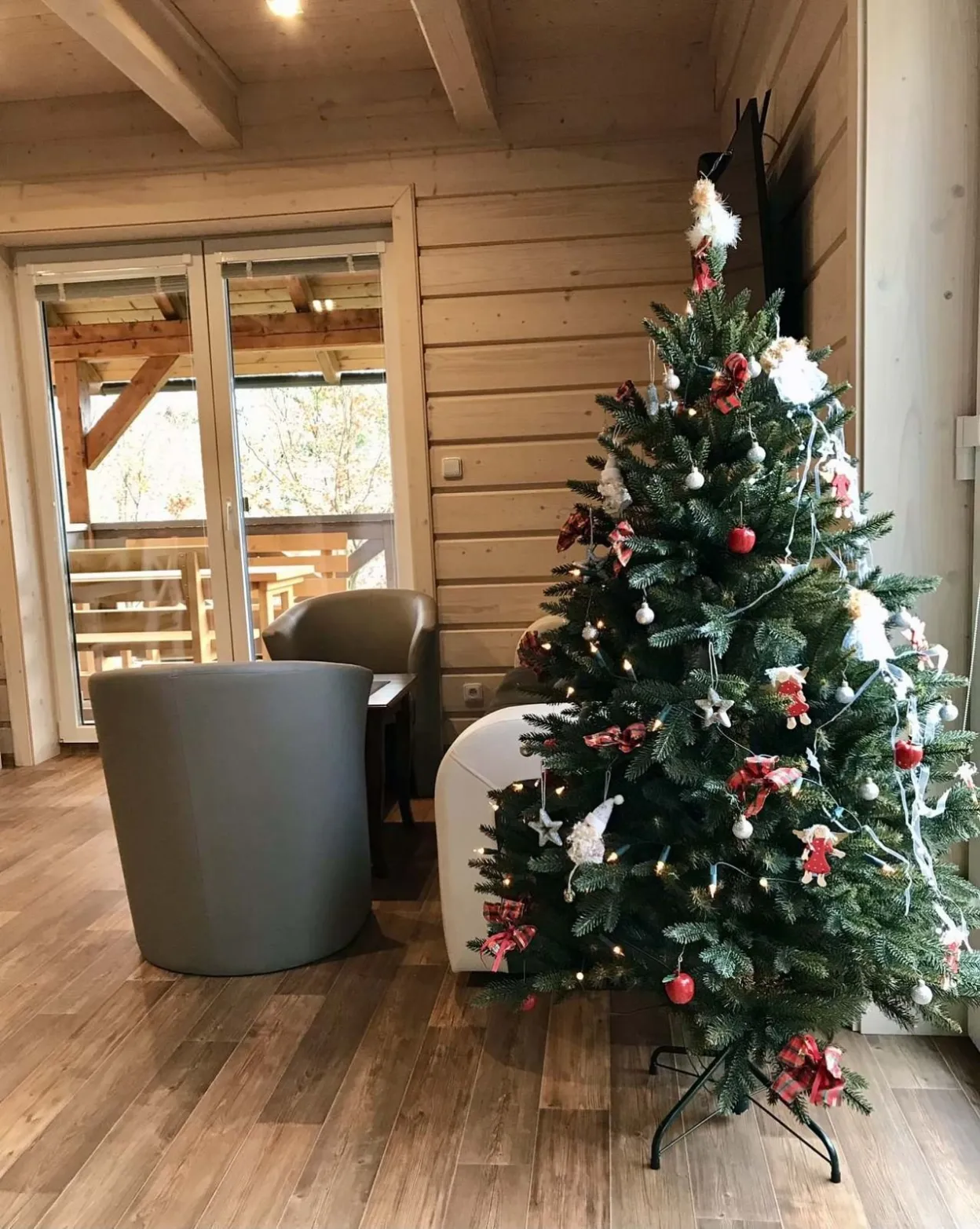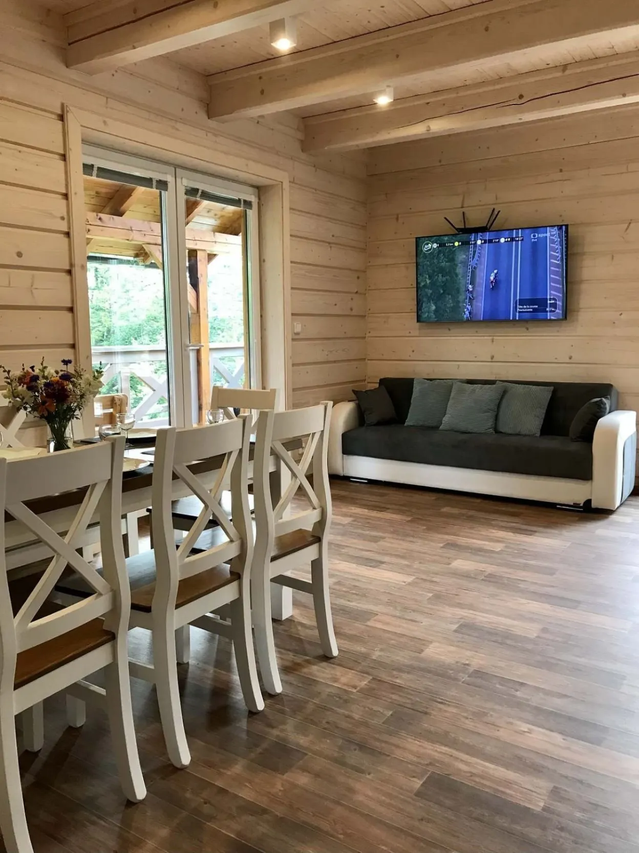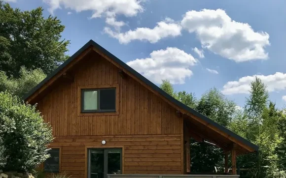 Nově postavená chaloupka pro 8 osob v rustikálním stylu. Přírodní materiály dřevo a kámen převládají.