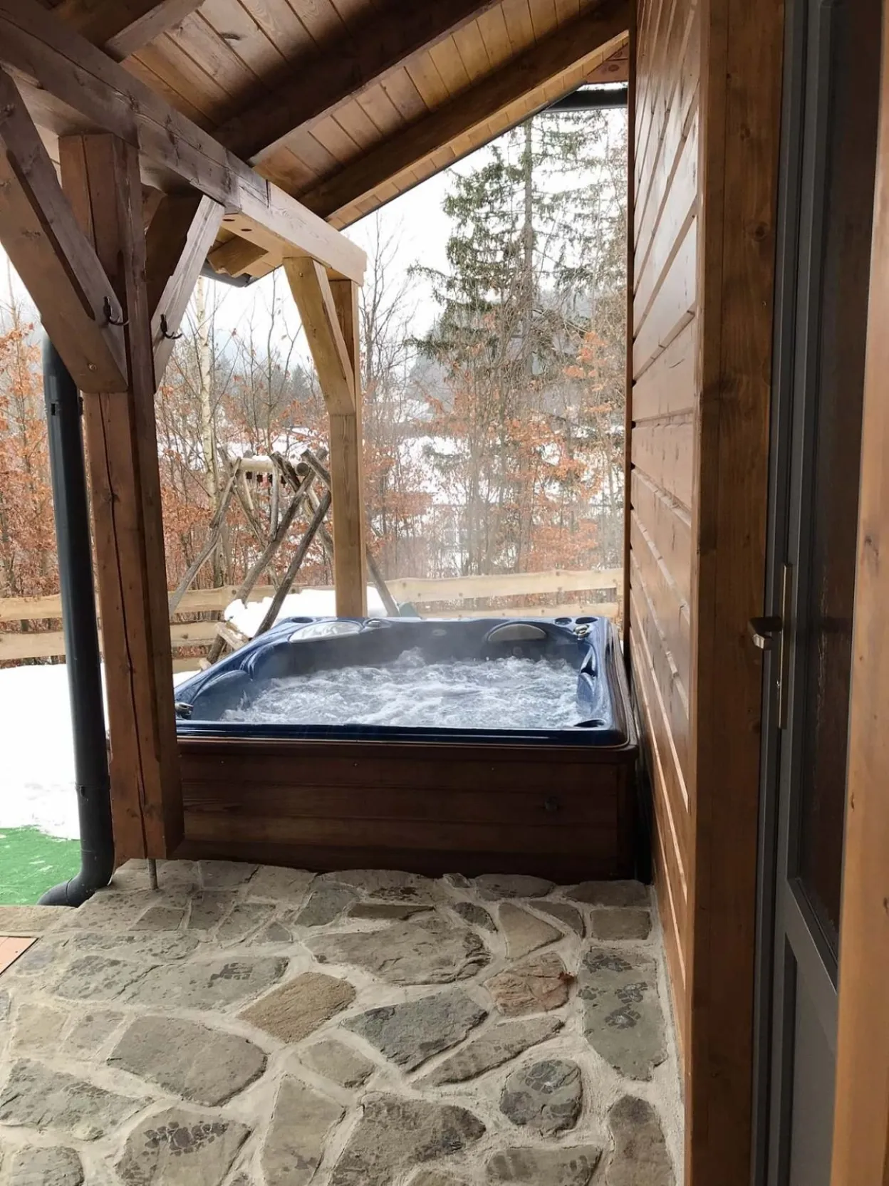 Jedná se o druhou chalupu na pozemku. Budete však mít vše své. Parkoviště, ohniště i grilovací terasu, houpačky se skluzavkou pro děti. Venkovní vířivka pro 4 osoby za příplatek viz ceník. Chalupa je koncipována tak, aby všichni měli soukromí.