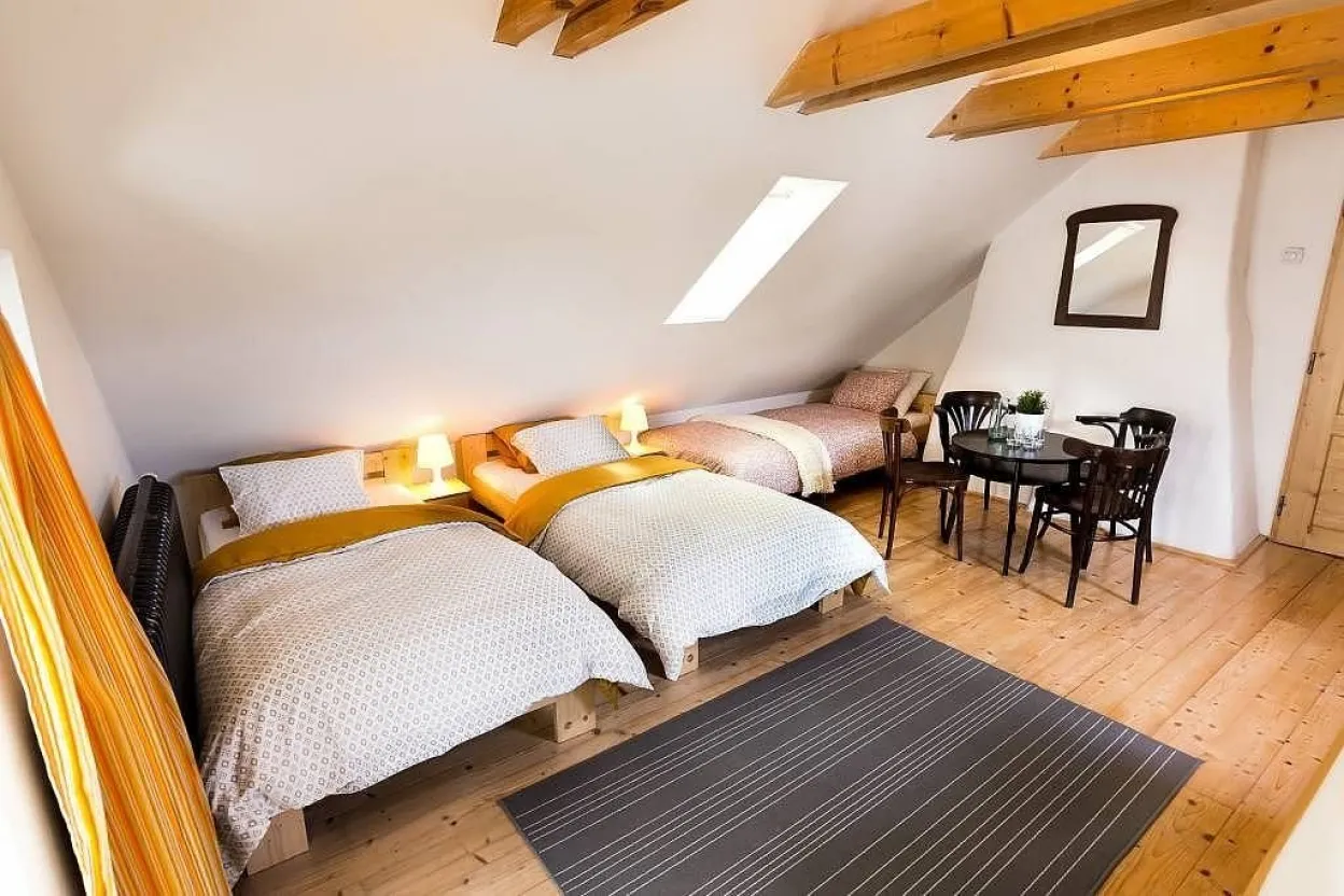 Chalupa k pronajmutí poskytuje ubytování pro 12 osob ve 4 ložnicích.