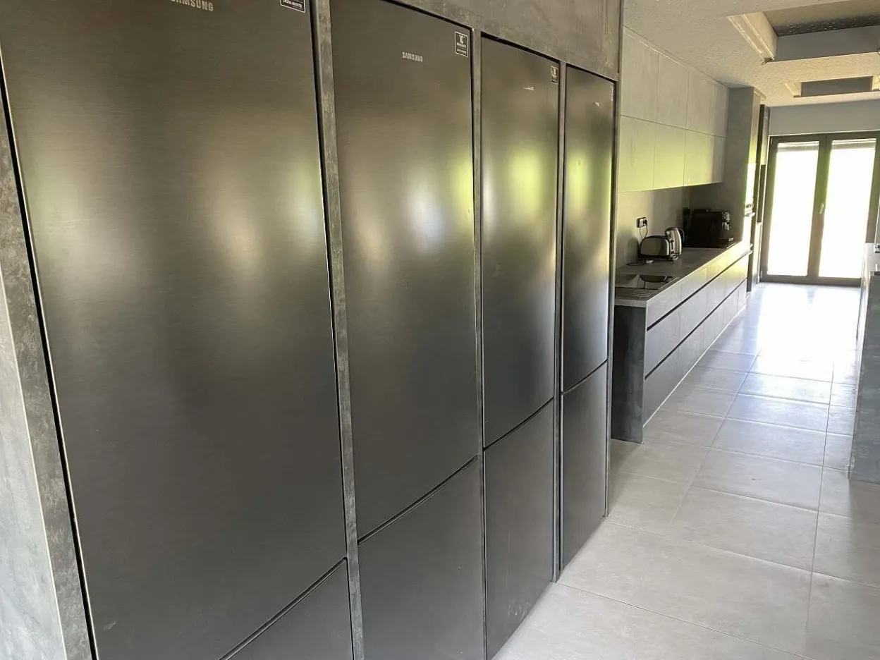 Samostatně je zde jedna místnost rozdělená na tři sekce: kuchyň, která je uzpůsobena pro plnohodnotné vaření i ve více lidech najednou. Osadili jsme ji pro Vás 2x horkovzdušnou troubou, 2x mikrovlnou troubou, 2x sklokeramickou deskou, 2x dřezem, 2x myčkou nádobí, kávovarem na zrnkovou kávu, topinkovačem, toustovačem, 4x lednicemi. Ke kuchyni přiléhá samostatná, nevytápěná a dobře větraná místnost - spíž. Před ní je potom pro Vás připraveno chladící zařízení se 4mi naražeči. Na jeden Vám rádi na uvítanou narazíme 20l soudek Bernard 11. Další sudy (pivo Bernard, limo) Vám rádi necháme za nákupní cenu dovézt.