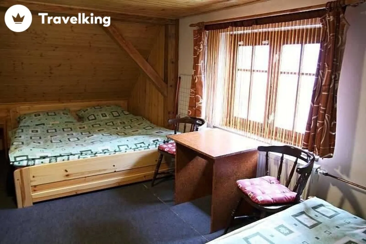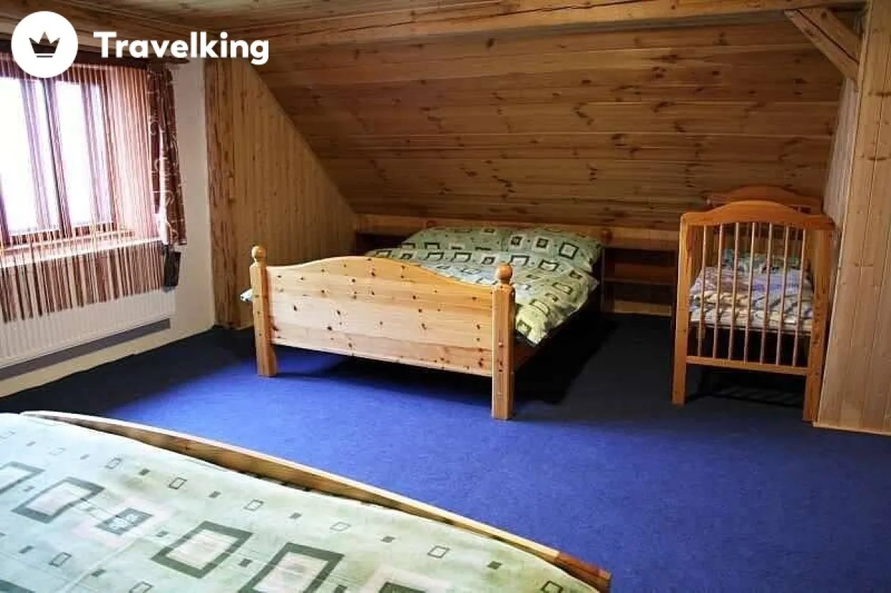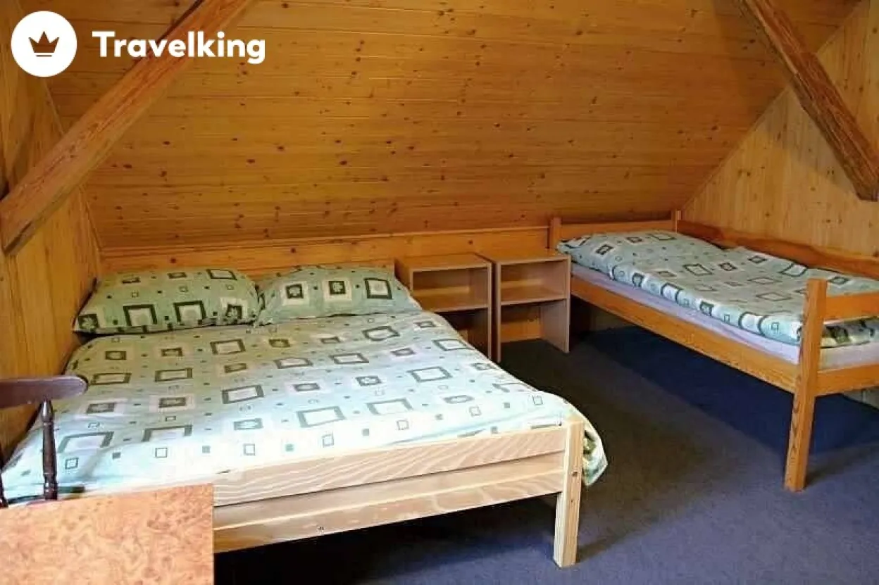 Ložnice a pokoje: 5x pokoj (1x 5 osob, 1x 5 osob, 1x 3 osoby, 1x 2 osoby, 1x 3osoby) + možnost 2x přistýlka, 1x spol. místnost (2x pohovka), 1x dětská postýlka.