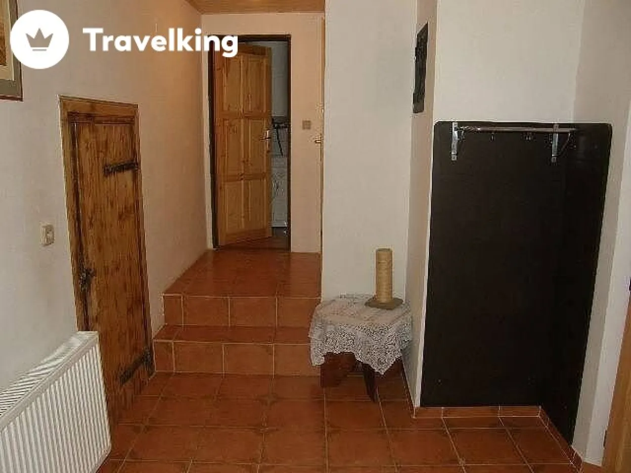 Vstupní chodba s botníkem, jídelní stůl, 2x TV, kuchyňská linka, elektrický sporák, mikrovlnná trouba, myčka, konvice, toustovač, ledničky, digestoř.