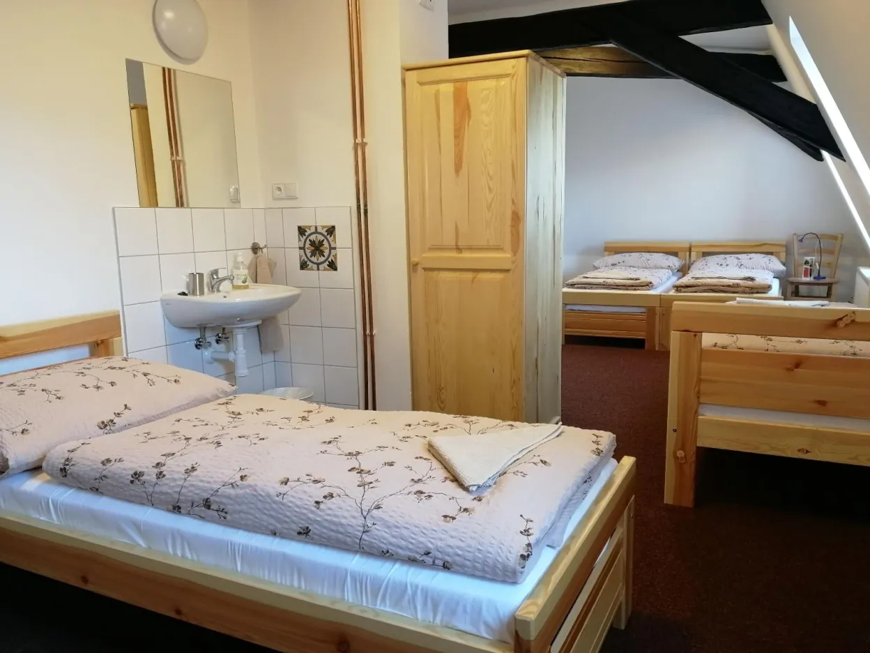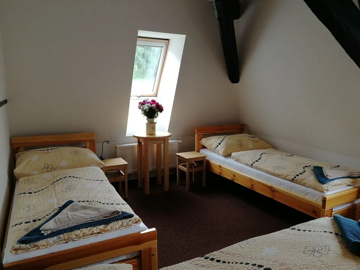 K dispozici je plně vybavená kuchyně, barokní sál využívaný jako jídelna a 7 nově vybavených pokojů včetně jednoho apartmánu,