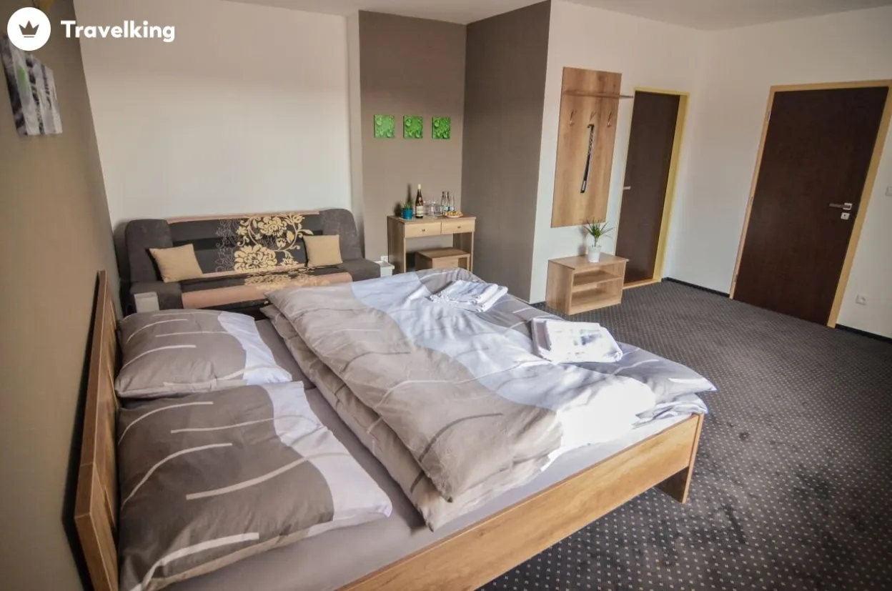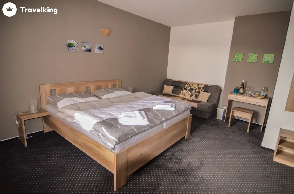 | Pokoj Ryzlink | 3 | 0 | Manželská postel a jedno samostatné lůžko koupelna vybavena sprchovým koutem, fénem, WC a toaletními potřebami televize LCD, mini lednice, trezor, klimatizace |