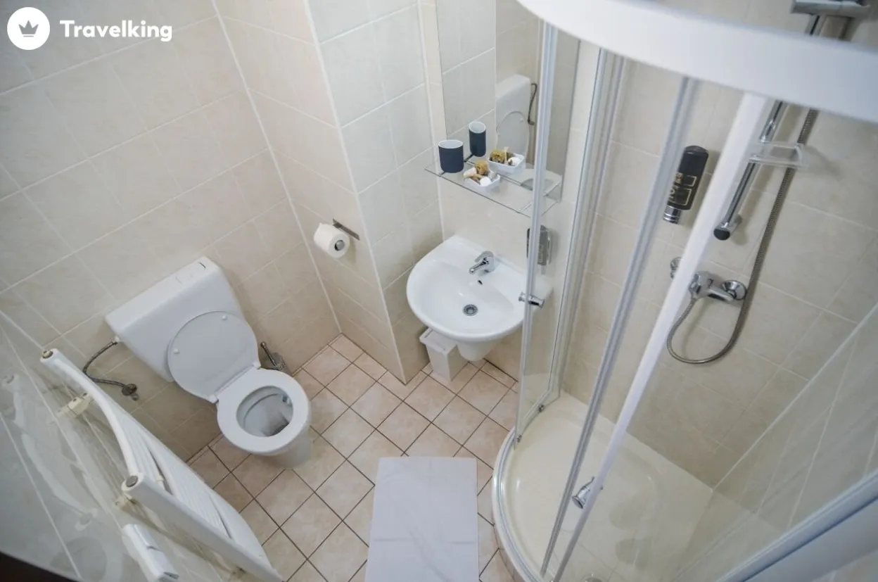 | Koupelna pro POKOJ MERKUR | Kúpeľňa | Koupelna vybavena sprchovým koutem, fénem, WC a toaletními potřebami |