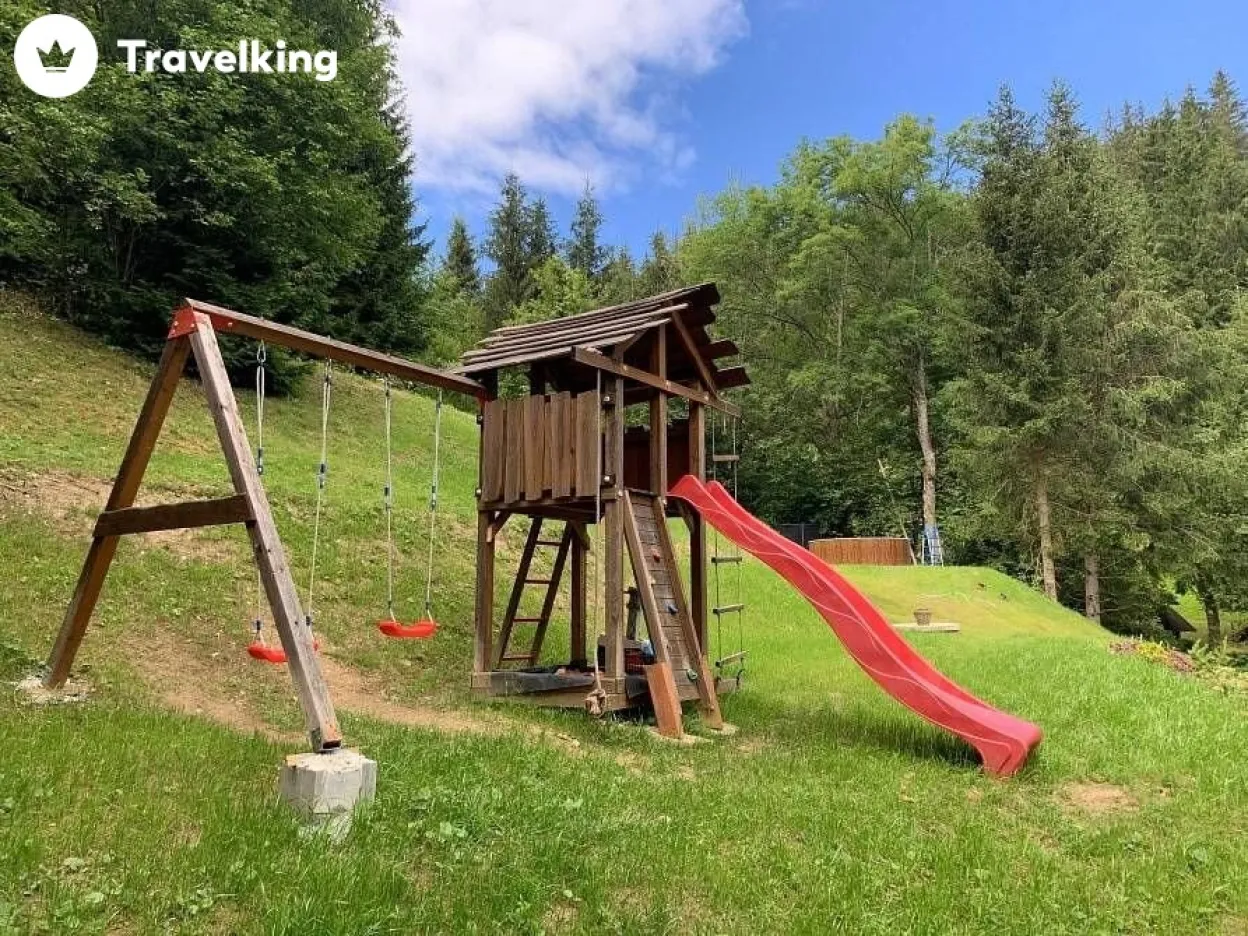 Podél chalupy protéká potůček a hned za chalupou je les. Pro děti zde najdete trampolínu, houpačky se skluzavkou, pískoviště a bazén 3,6m. Členitost terénu, les v těsné blízkosti, posezení pro děti na stromě, potůček a jiné zajímavosti, nenechají vaše děti v klidu a opravdu zde budou mít o zábavu postaráno. Před chalupou je nekryté ohniště s posezením, za chalupou je velká krytá pergola s posezením a krbem. Hosté mají k dispozici také 2 přenosné grily.