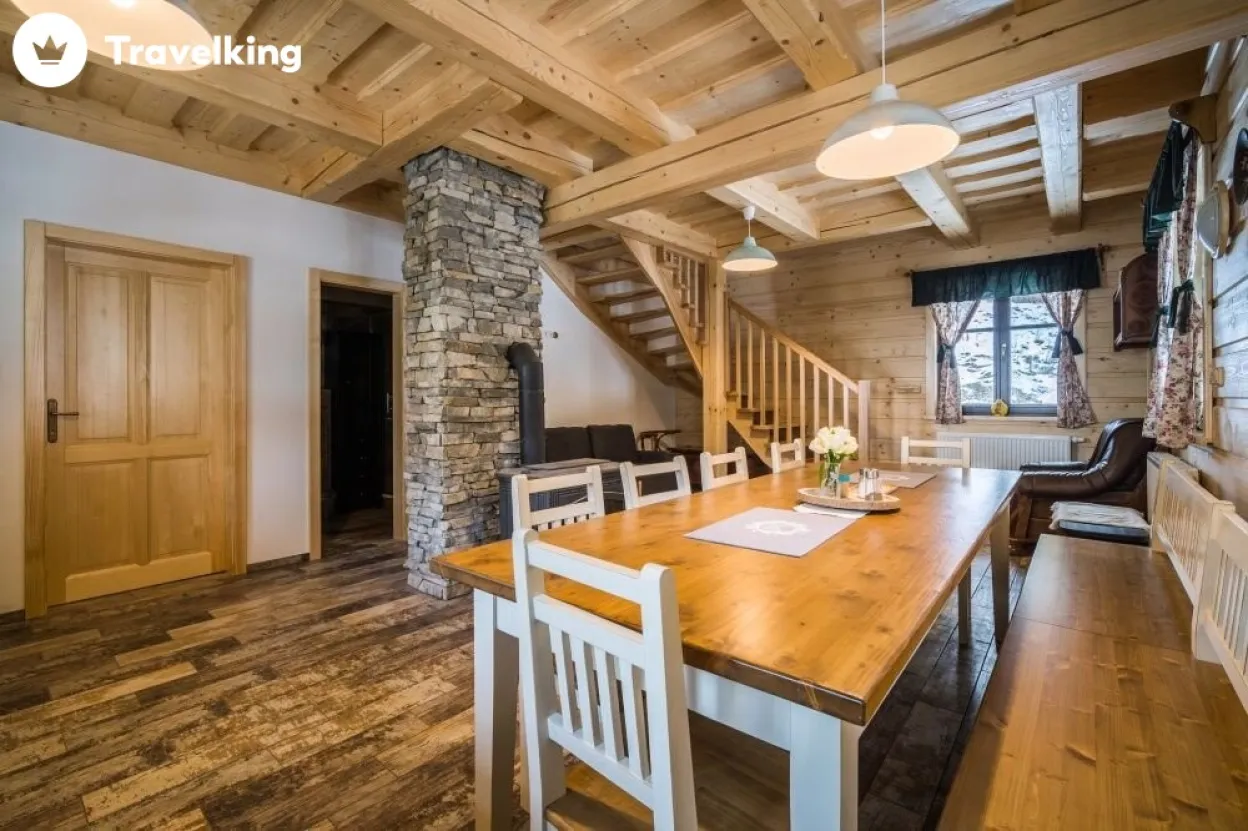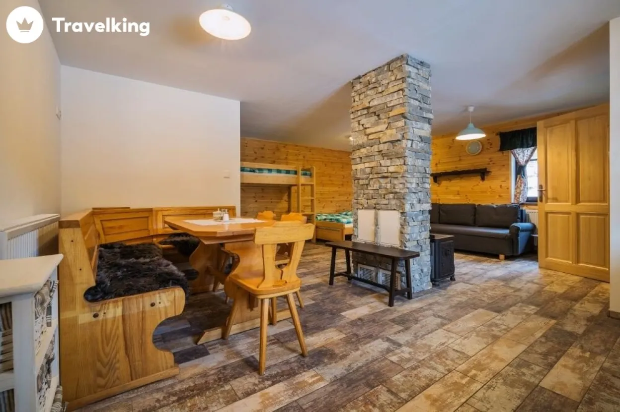 Nabízíme k pronájmu nově postavenou roubenou chalupu ve valašském stylu v údolí Jezerné ve Velkých Karlovicích. Roubenka disponuje 3 apartmány se samostatnými vchody, s vlastní plně vybavenou kuchyní, WC a sprchovým koutem. Apartmány jsou nezávislé na sobě, klademe důraz na soukromí ubytovaných hostů. 2 apartmány slouží k pronájmu hostů, ve 3.apartmánu bydlí majitelé, kteří na víkend přijíždí provést úklid chalupy a okolí a předat chalupu novým hostům. Po víkendu odjíždí, takže jste na chalupě sami.