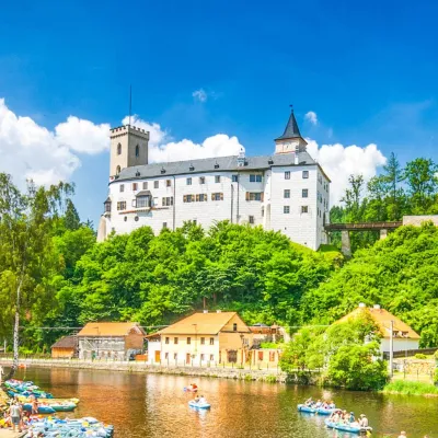 Hrad Rožmberk nájdete v Rožmberk nad Vltavou v blízkosti Českého Krumlova a priehrady Lipno. História hradu siaha do prvej polovice 13. storočia, kedy hrad založil Vok I. z Rožmberka. V priebehu 16. a 17. storočia bol hrad prestavaný na renesančný zámok. Neskôr sa pánmi hradu stali Buquoyovci, ktorí Dolný zámok nechali prestavať a rozšírili ho o časť, ktorú dnes nazývame Horný hrad.